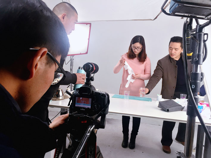 心遇衛(wèi)生巾產(chǎn)品實(shí)驗(yàn)進(jìn)行中,也是此產(chǎn)品宣傳片制作的精華所在。