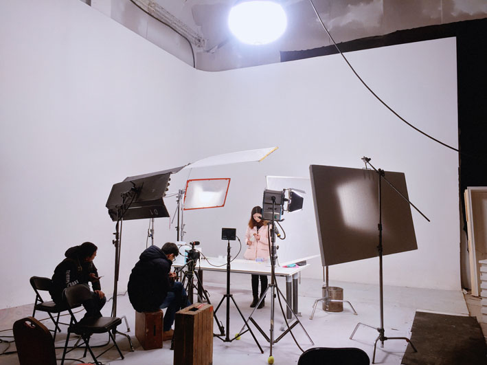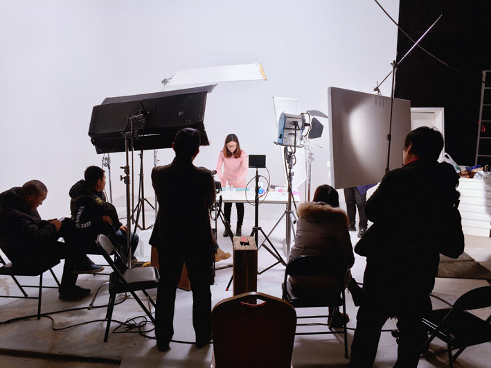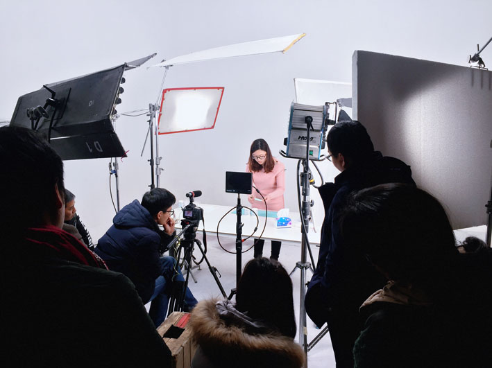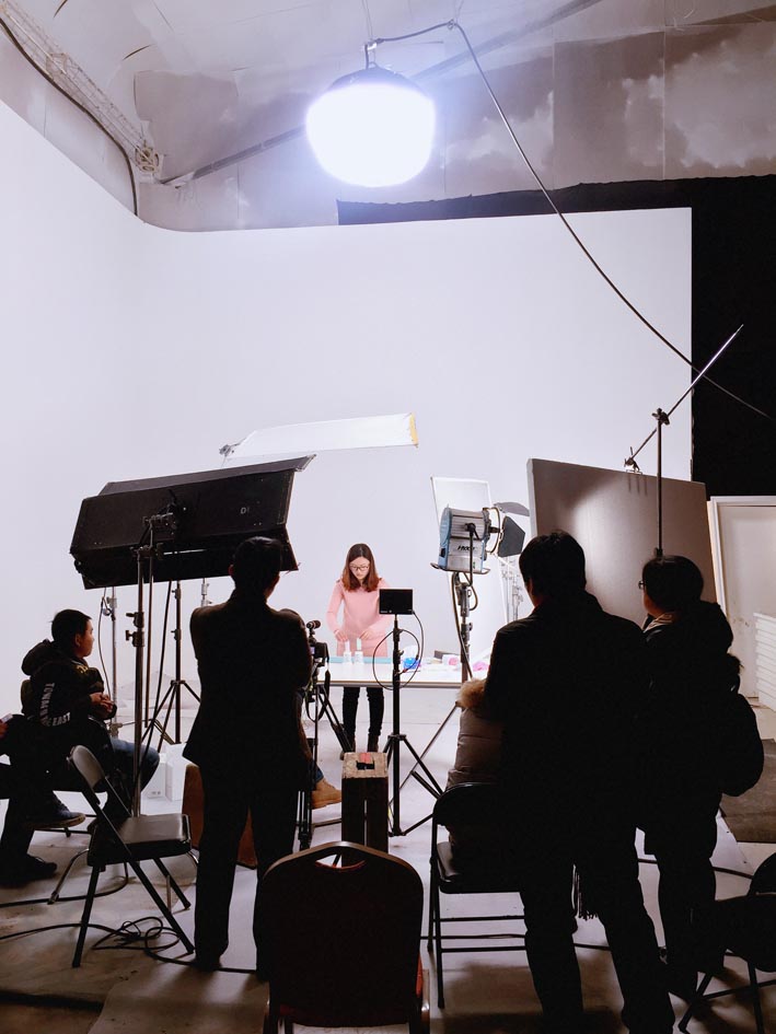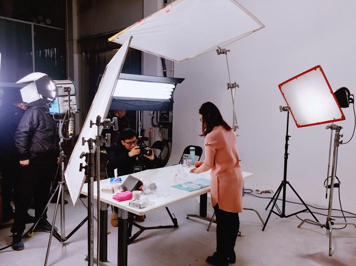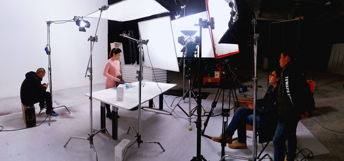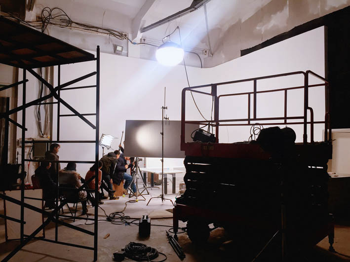 其實(shí)產(chǎn)品宣傳片制作最離不開的就是燈光了。此時(shí)我們的燈光師已經(jīng)布光完畢,剩下的就是微調(diào)了。